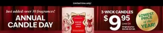 Limited time only! Shop in store and get 3-wick candles for $9.95.